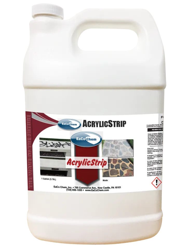 Acrylic Strip is a solvent-based sealer, stain and paint stripper with a wide range of applications. Acrylic Strip will remove layers of acrylics, acrylic latexes, polyurethane and other resin coatings, and it is especially good at removing curing compounds from concrete.