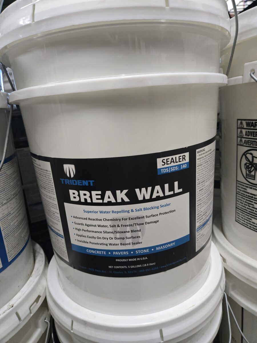 Break Wall is a water based invisible penetrating sealer. It is a high performance silane/siloxane blend that protects the surface from water penetration, salt & freeze/thaw damage. Its advanced reactive chemistry provides excellent surface protection. Break Wall can be used on concrete & clay pavers, natural & manufactured stone (containing quartz or other silicas), flat & stamped concrete, segmental retaining wall block, concrete walls, exposed aggregate, unglazed tile and grout.