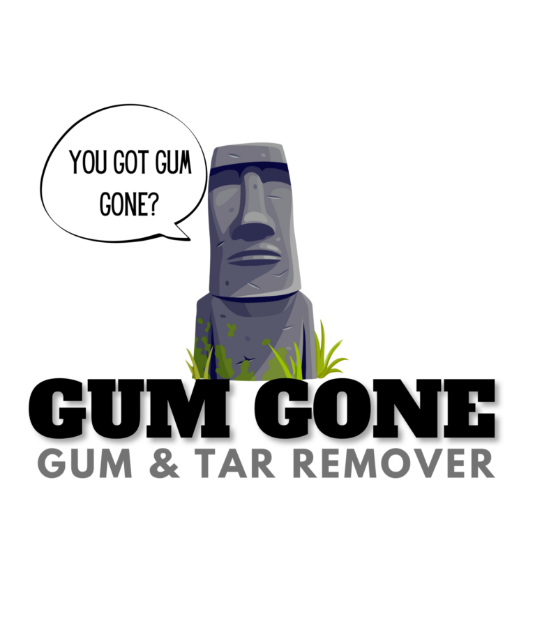 Gum Gone is designed to release and remove chewing gum, tree sap and other organic stains from walkways, sidewalks, driveways and other concrete surfaces. Item #62550-01. Spray undiluted on chewing gum, tree sap, tar for a minimum of 5 minute dwell time. Scrape with a putty knife or use a pressure washer with a wide fan or turbo nozzle to lift gum off. If it leaves a shadow repeat with a longer dwell time, 15 minutes or use a degreaser.
